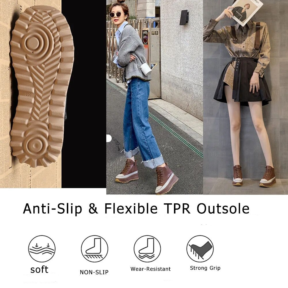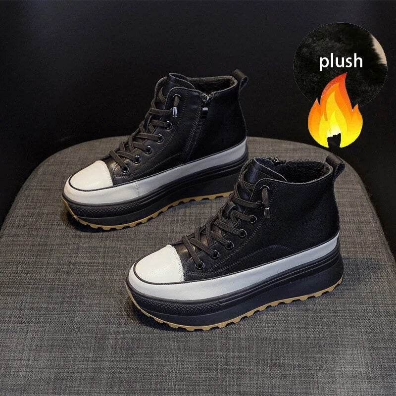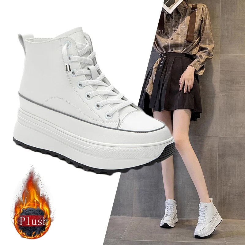 Skyrise Lederen Sneakers - Chunky Hoge Platform (7 cm/2,76 in) Dameschoenen