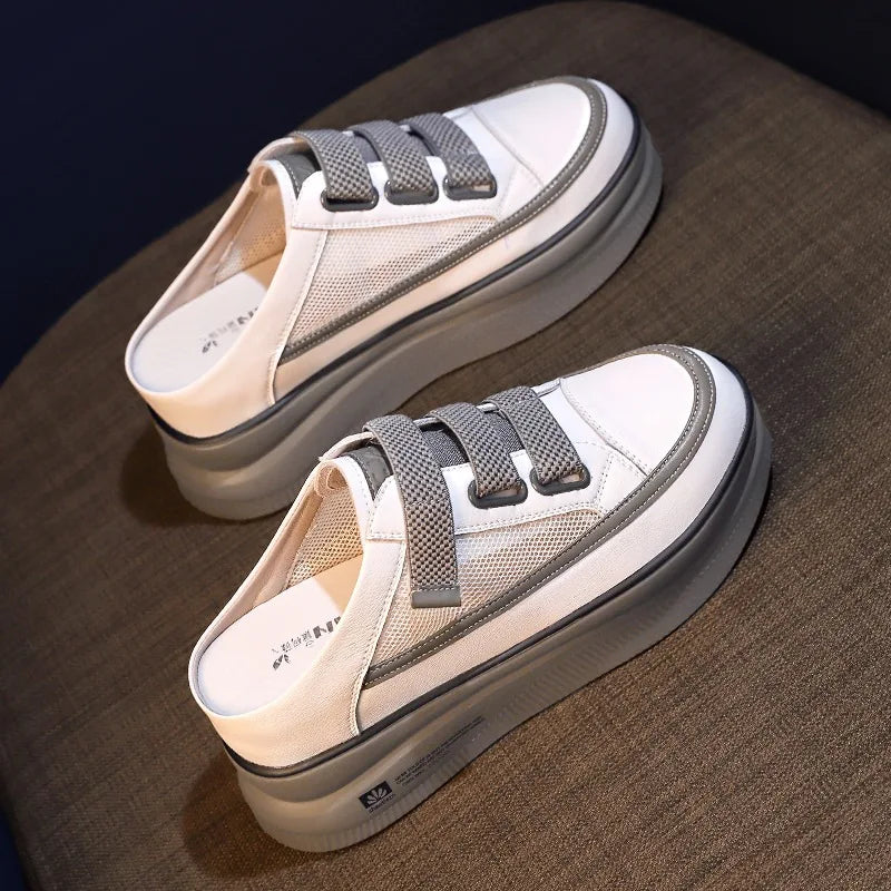 Deze Dames Half Sneakers Platform - Victoria zijn perfect om comfortabel en stijlvol onderweg te blijven. Ze hebben een instapontwerp voor gemakkelijke draagbaarheid en een platformsol voor extra ondersteuning. Hun trendy muiltjes en wandelsandalen maken ze perfect voor elk buitenavontuur.